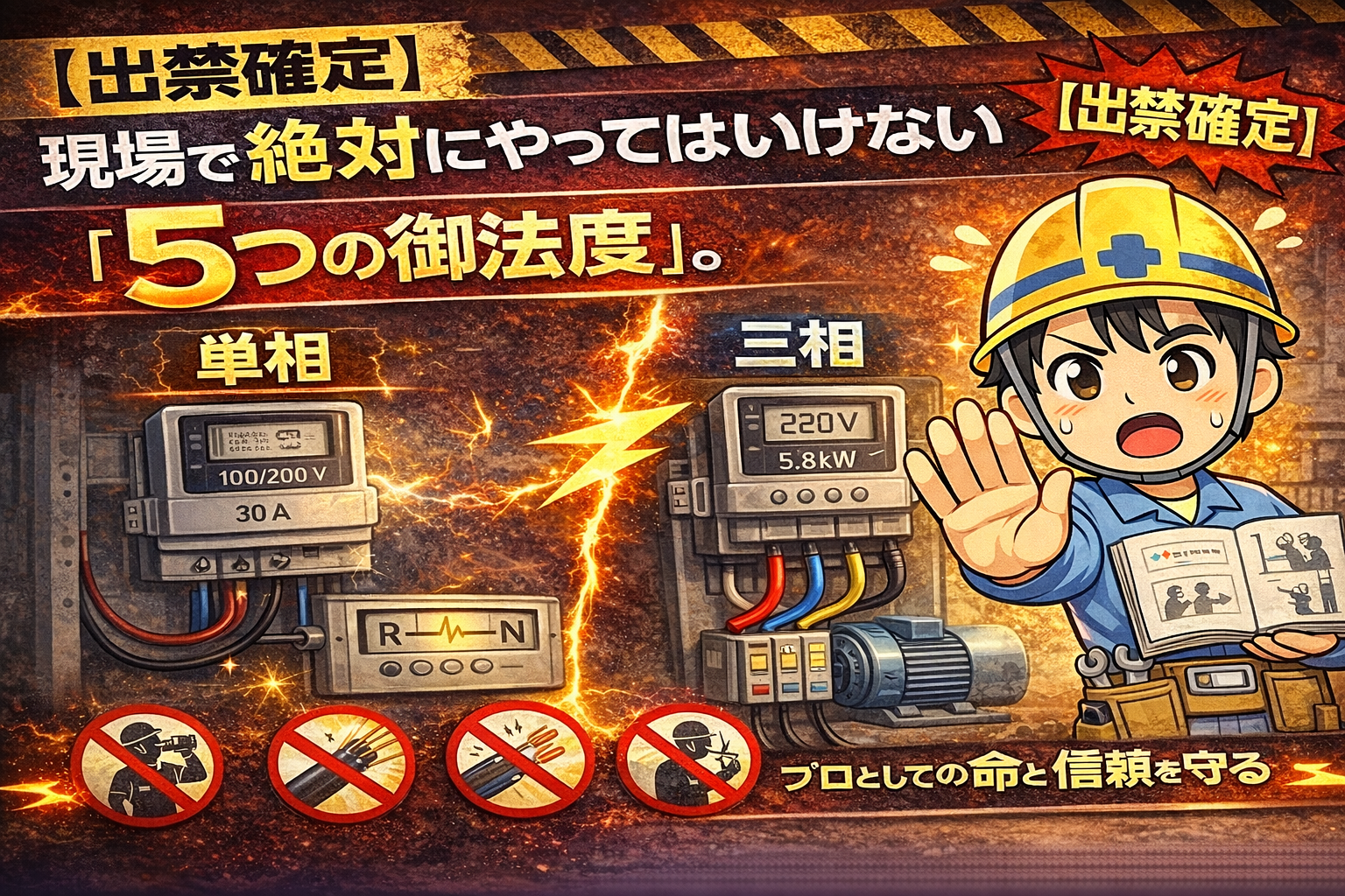 今回は、技術以前の**『これだけは絶対にやるな』**という5つのポイントをまとめました。これを守れない人は、現場に立つ資格はありません。自分と仲間を守るために、心に深く刻んでください。