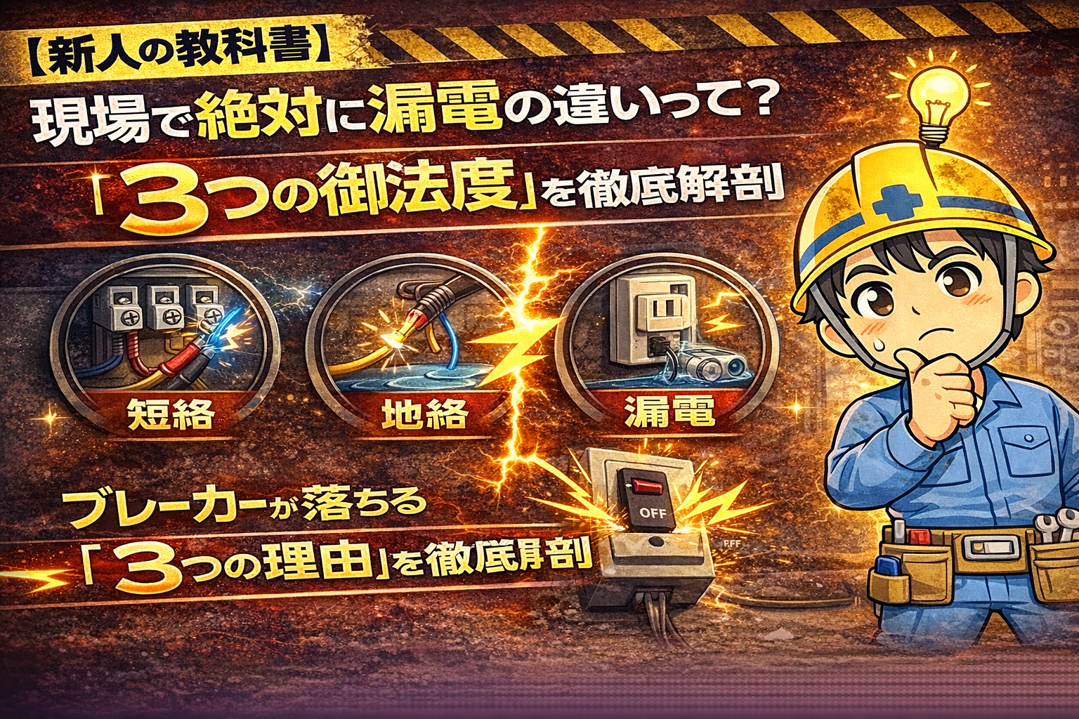 - 現場での結末: 漏電遮断器(ELB)がこれを検知して電気を止めます。音も火花もないことが多いため、発見には**絶縁抵抗計(メガー)**が必要です。