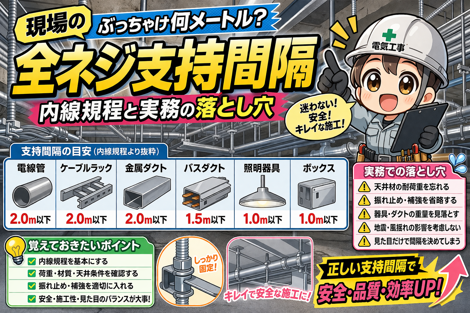 現場の「全ネジ支持間隔」ってぶっちゃけ何メートル?内線規程と実務の落とし穴